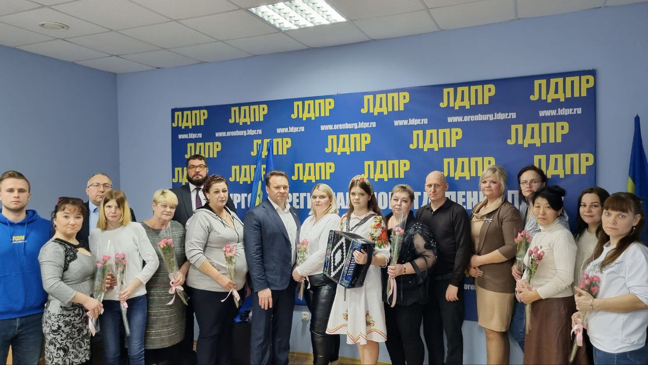 Заместитель координатора Оренбургского реготделения ЛДПР Андрей Рейзлер поздравил женщин с весенним праздником и вручил подарки: