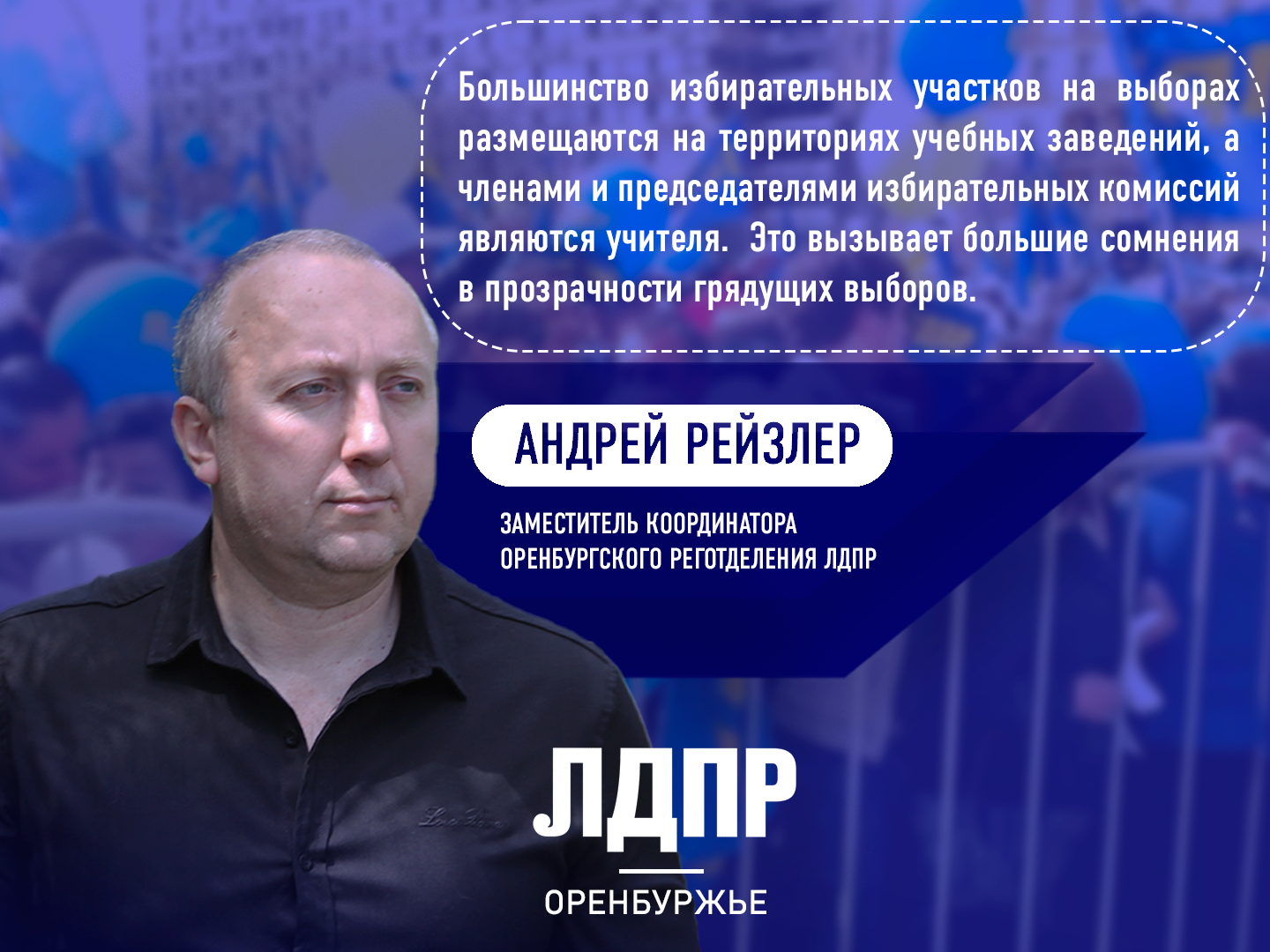 «Для некоторых закон не писан. Уже много говорил о том, что в Оренбургской области власть монопольно принадлежит ЕдРу. Все посты в исполнительной власти, и не только, занимают они. Решили пойти дальше. Не просто подчинили Министерство образования себе, но и превратили школы в какую-то электоральную "кормовую базу". Полнейшее лицемерие. Учитывая тот факт, что большинство избирательных участков на выборах размещаются на территориях учебных заведений, а членами и председателями избирательных комиссий в большинстве своём являются учителя, уже сейчас вызывает большие сомнения прозрачность грядущих выборов»
