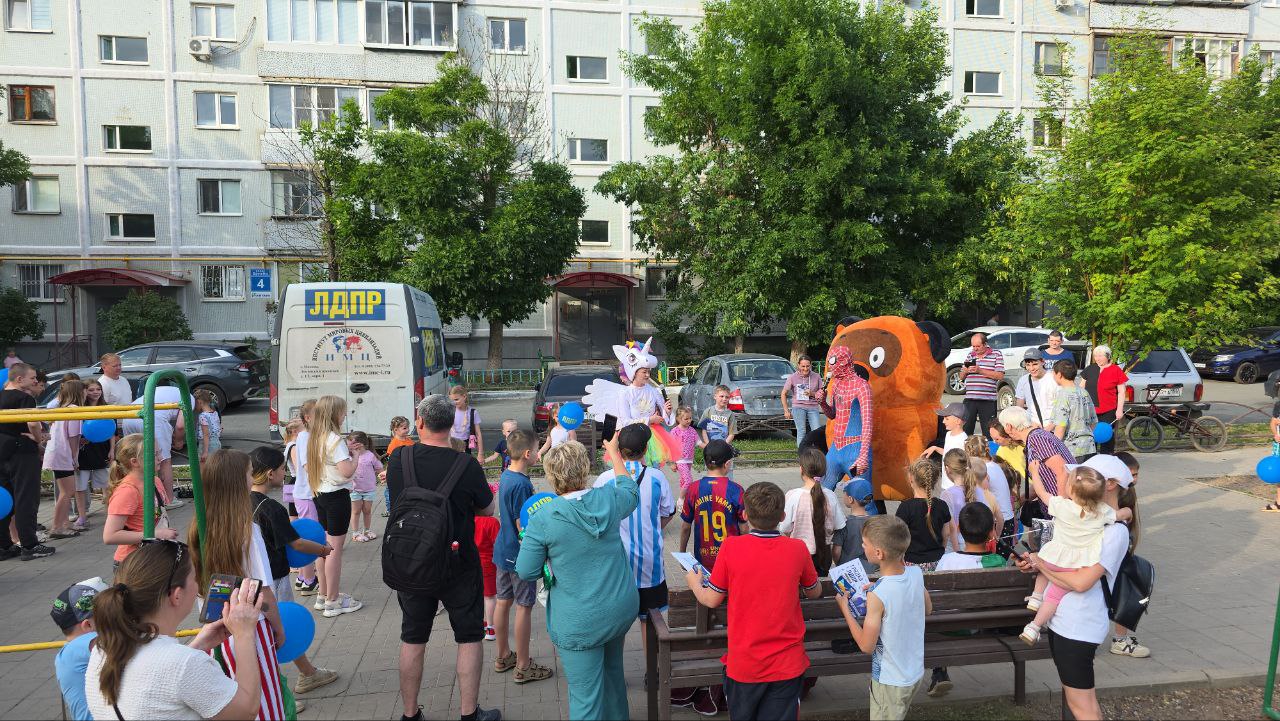 В Оренбурге во дворе по ул. Дружбы 2/1 прошел большой детский праздник. Депутаты Вадим Бикбов и Максим Щепинов вместе с аниматорами раздавали детям воздушные шары, мороженное и сладкую вату, а также принимали обращения жителей.